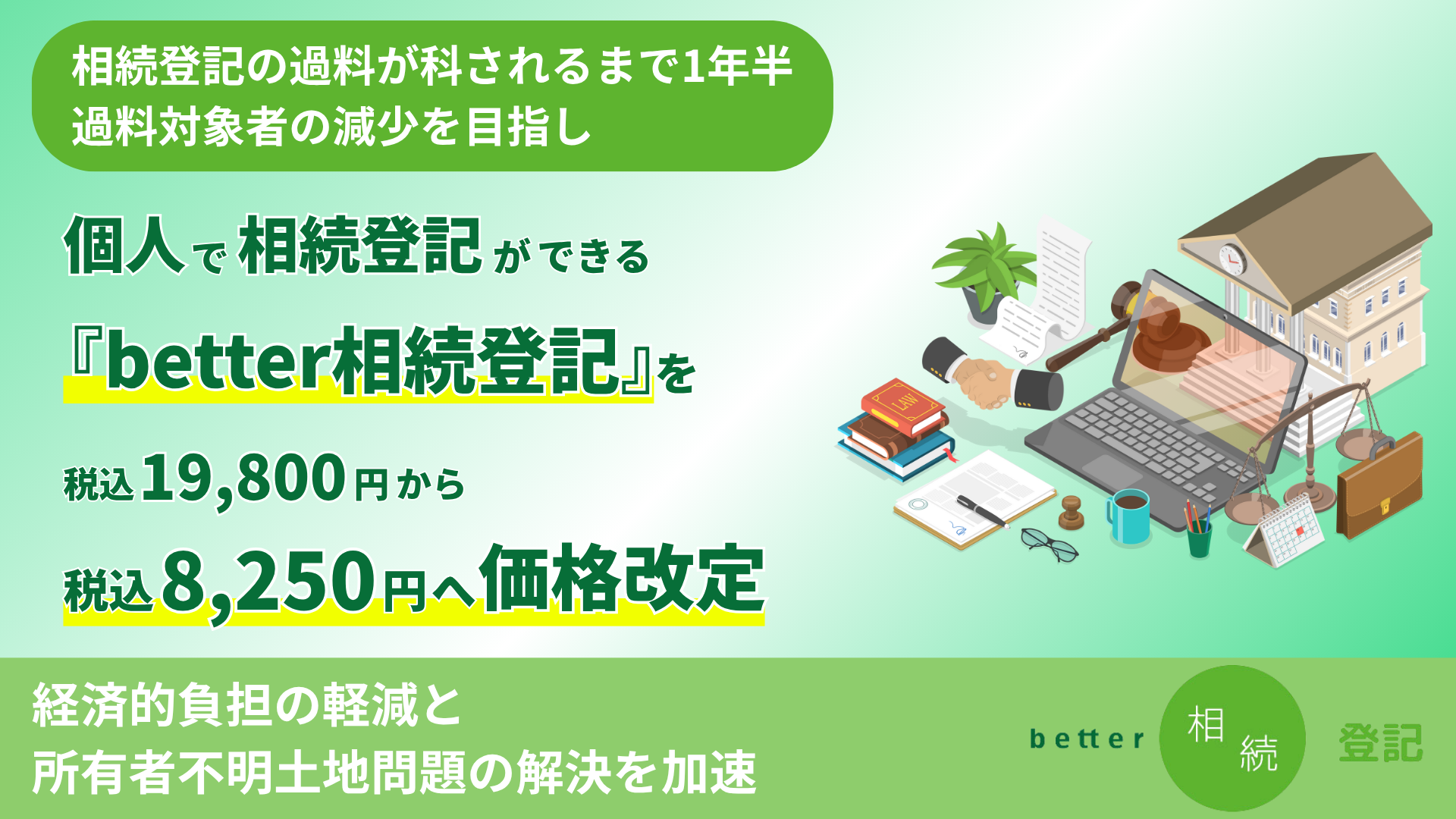 相続登記義務化の過料が科されるまで1年半。相続登記が個人でできる『better相続登記』を税込8,250円へ価格改定