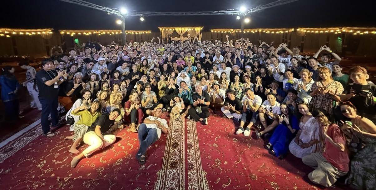開幕前夜祭では、300名近い参加者が50台以上のランドクルーザーに分乗し、野生のガゼルが生息する砂漠保護区でのデザートサファリを体験。広大な砂漠でのバーベキューや伝統的な中東のエンターテインメントを楽しみ、非日常の交流が繰り広げられました。