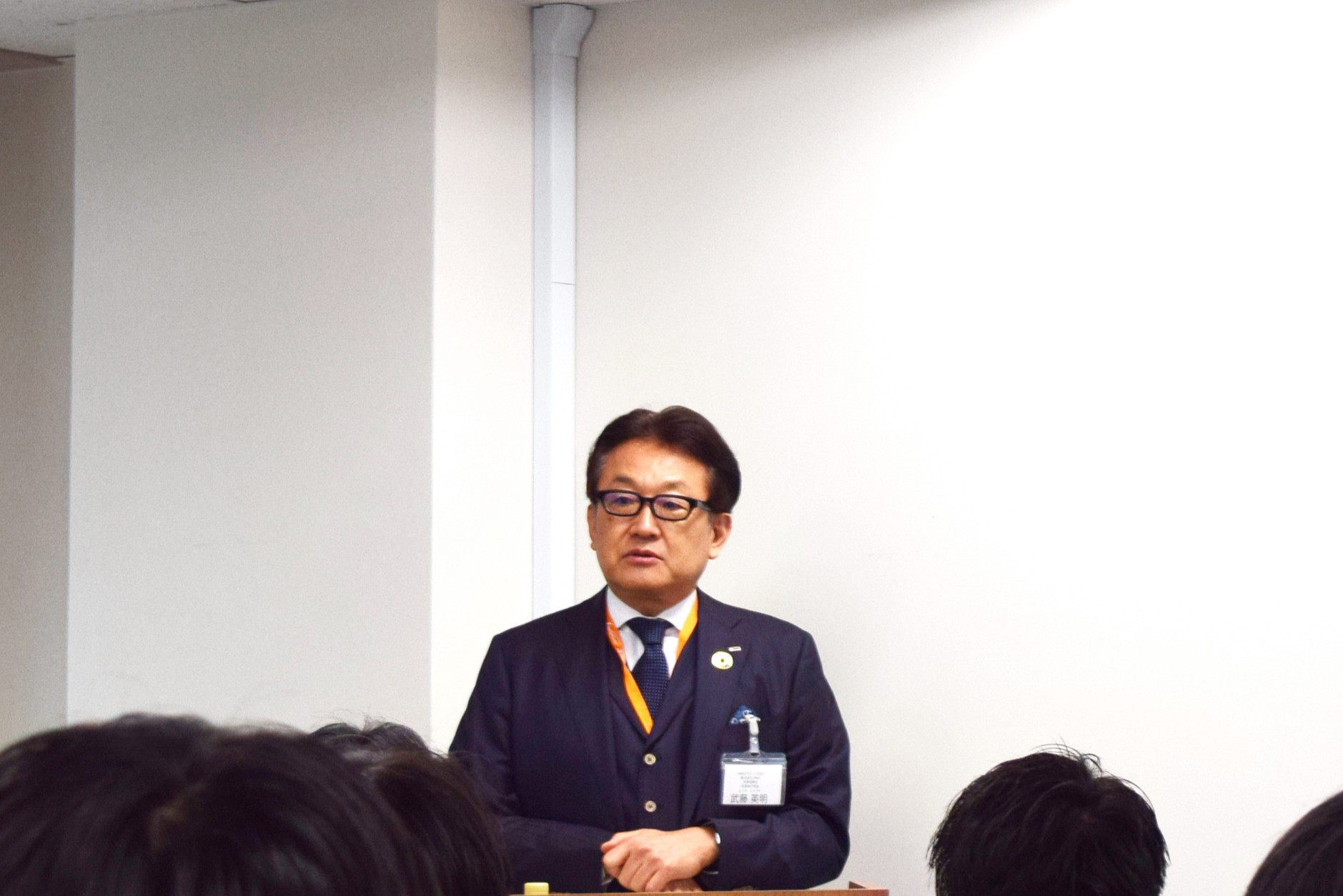 代表取締役 社長執行役員 武藤英明からは、内定者へ向けて歓迎の言葉が贈られるとともに、JPMCの取り組みや今後の展望を語っていただきました。