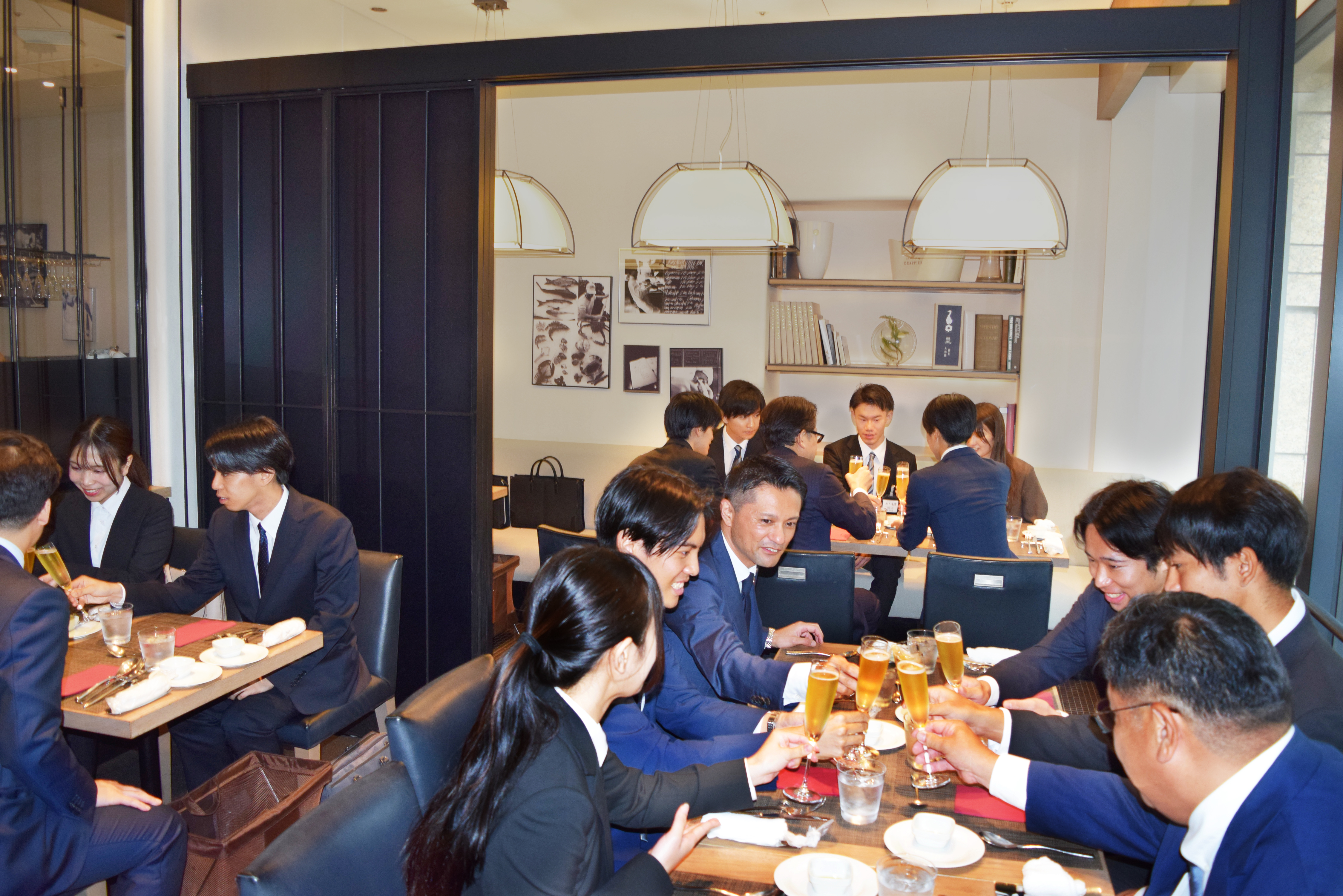 内定式の終了後にはランチ懇親会が行われ、先輩社員も加わった交流の場となり和気あいあいとした雰囲気で親睦を深めました。
