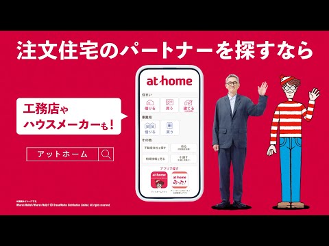 本CMでは、アットホームのCMでお馴染みの『ウォーリーをさがせ!』の「ウォーリー」と松重さんが共演。「不動産情報サイト アットホーム」の世界の中に現れ、理想が詰まった注文住宅を探します。土地や建築事例、工務店やハウスメーカーなど、注文住宅のパートナー探しが「不動産情報サイト アットホーム」でできることを伝えています。
