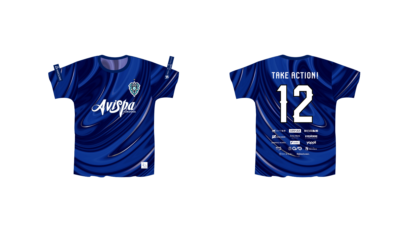 2025年10月4日、アビスパ福岡対横浜FCの試合会場にて配布された限定ユニフォーム「TAKE ACTION ユニフォーム」に、当社のロゴが掲載されました。TAKE ACTION ユニフォームは、TAKE ACTION Month!のイベントやワークショップに参加された方先着2,000名にプレゼントされました。