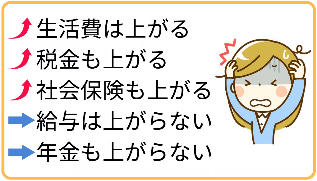 生活費・税金・社会保険料は上がる一方、給与・年金は上がらない現実